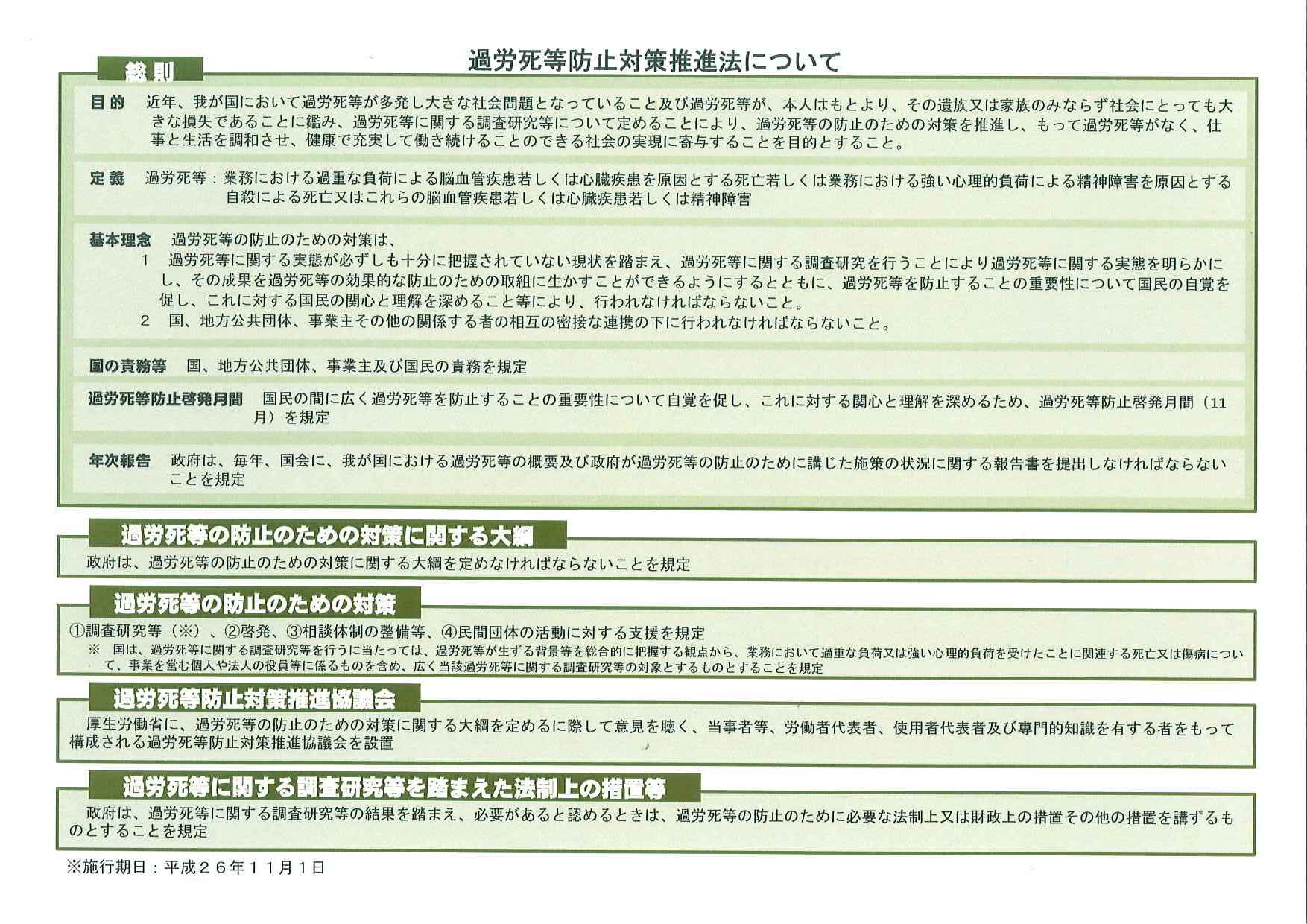 参考:過労死等防止対策推進法の骨子(2014年11月1日施行)