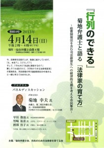 4月14日(日)、仙台弁護士会館において、「菊地弁護士と語る『法律家の育て方』~給費制復活を含む司法修習生への経済的支援を考える市民集会~」が開催されます。