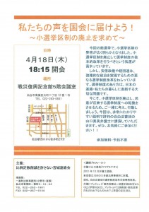 比例定数削減を許さない宮城連絡会では、自由法曹団の山口真美弁護士をお迎えし、特別講演会を開催します。