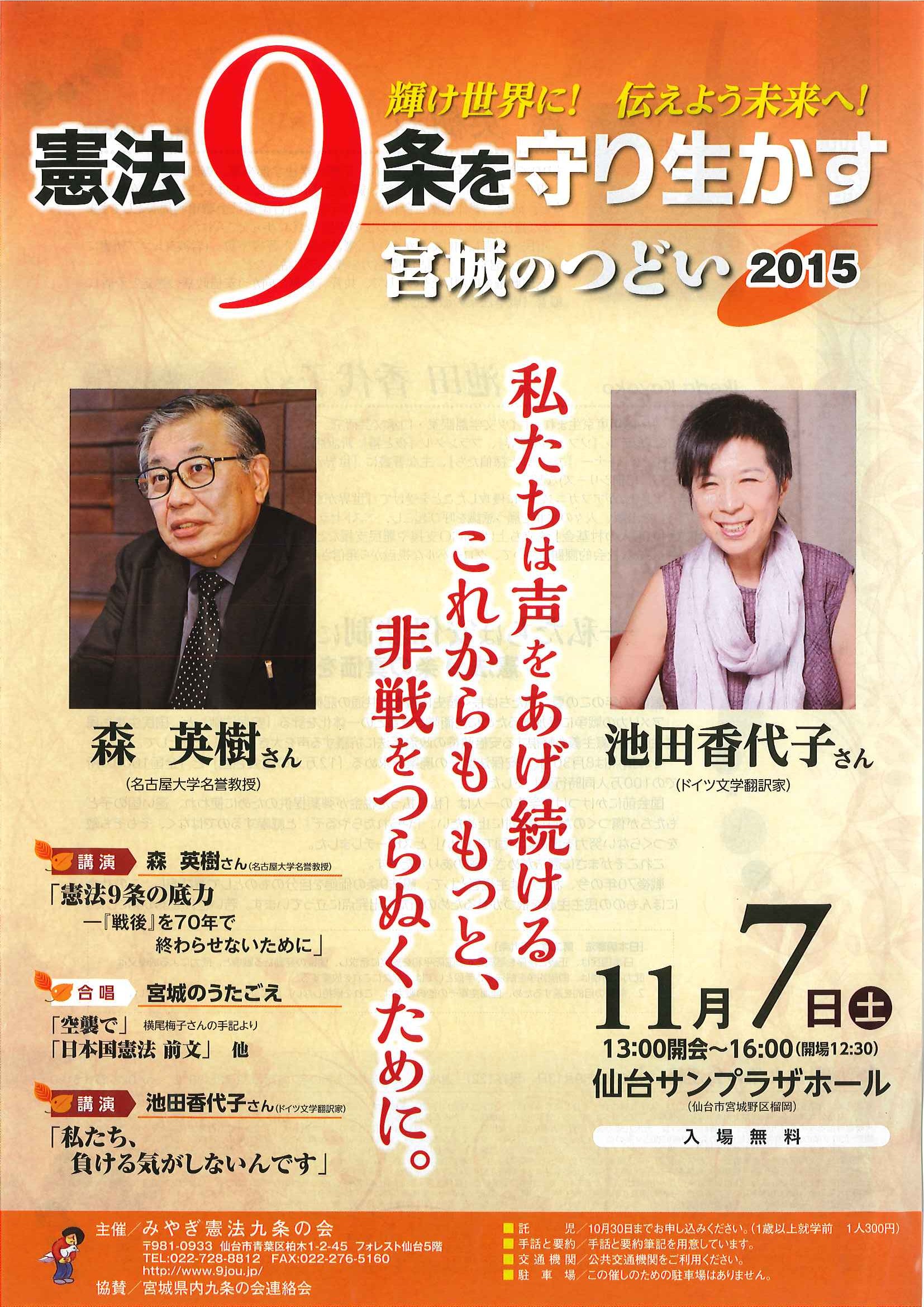 【イベントのお知らせ】-輝け世界に!伝えよう未来へ!-憲法9条を守り生かす 宮城のつどい2015