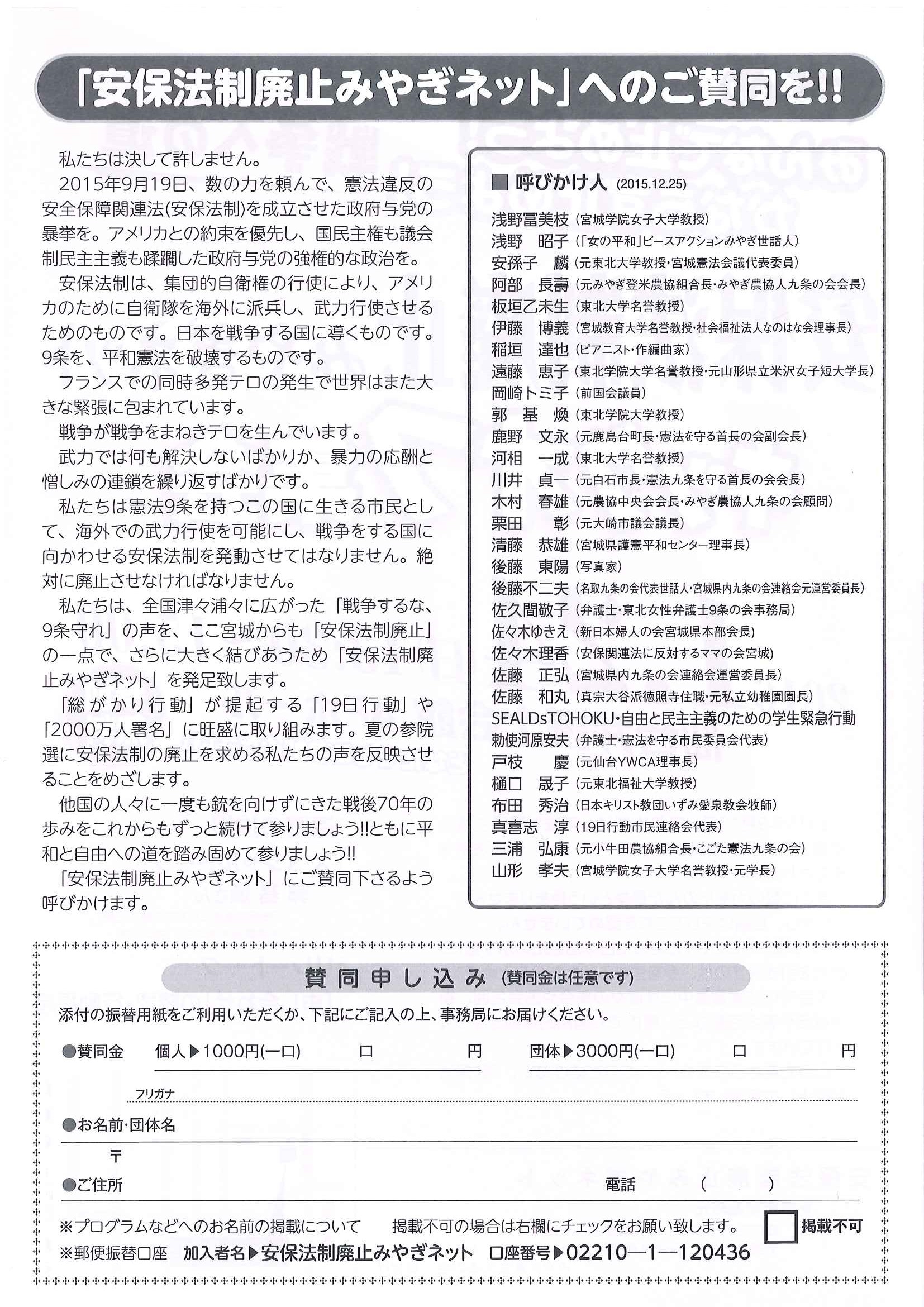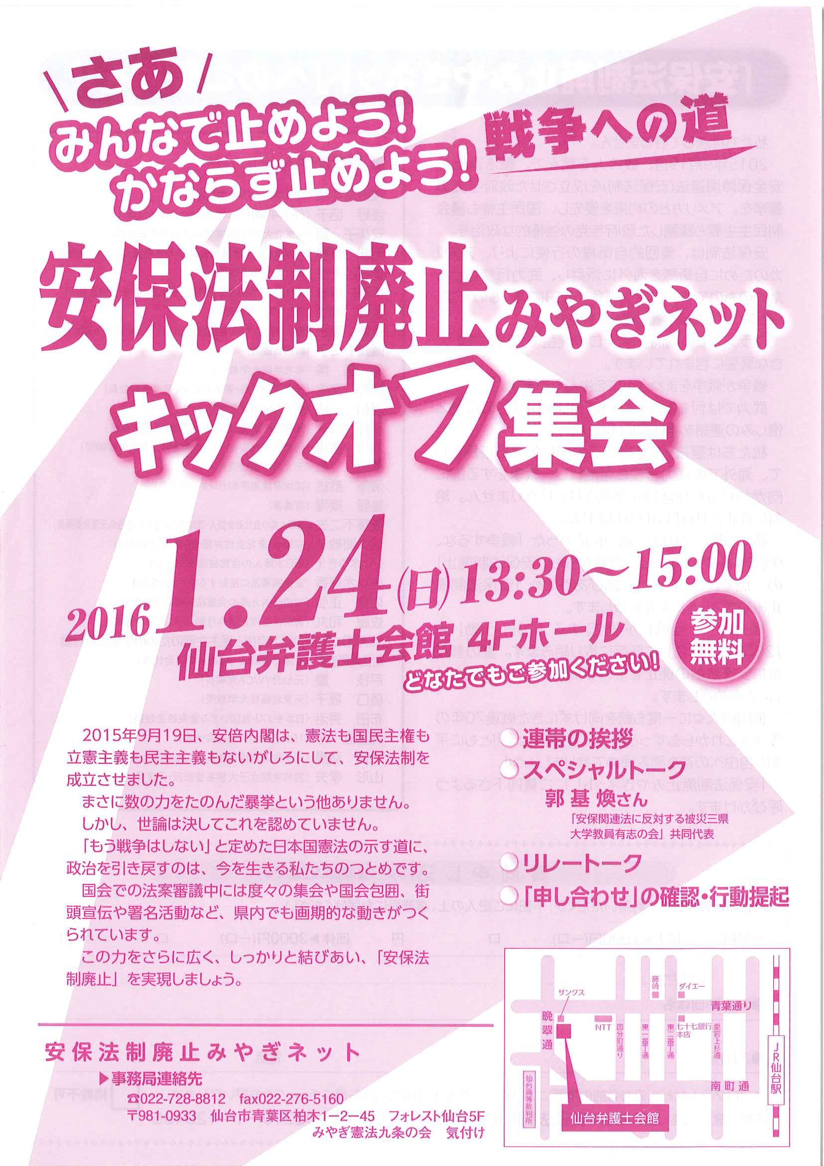【集会のお知らせ】安保法制廃止みやぎネット キックオフ集会 - 仙台 弁護士 一番町法律事務所