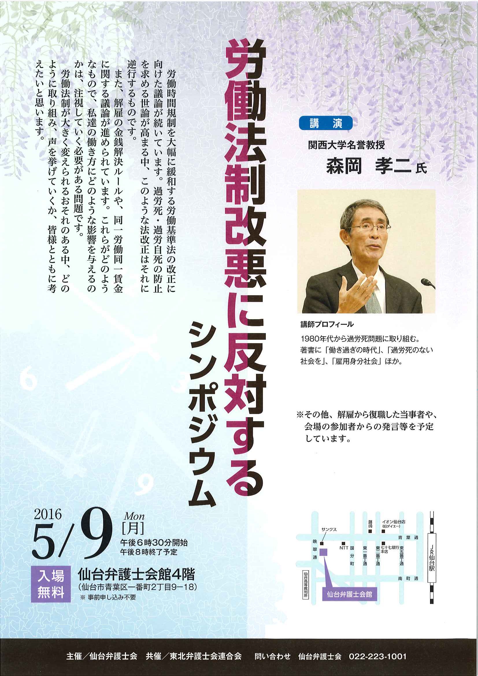 【シンポジウムのお知らせ】労働法制改悪に反対するシンポジウム【5月9日(月)午後6:30~8:00 仙台弁護士会館4階】 - 仙台 弁護士 一番町法律事務所