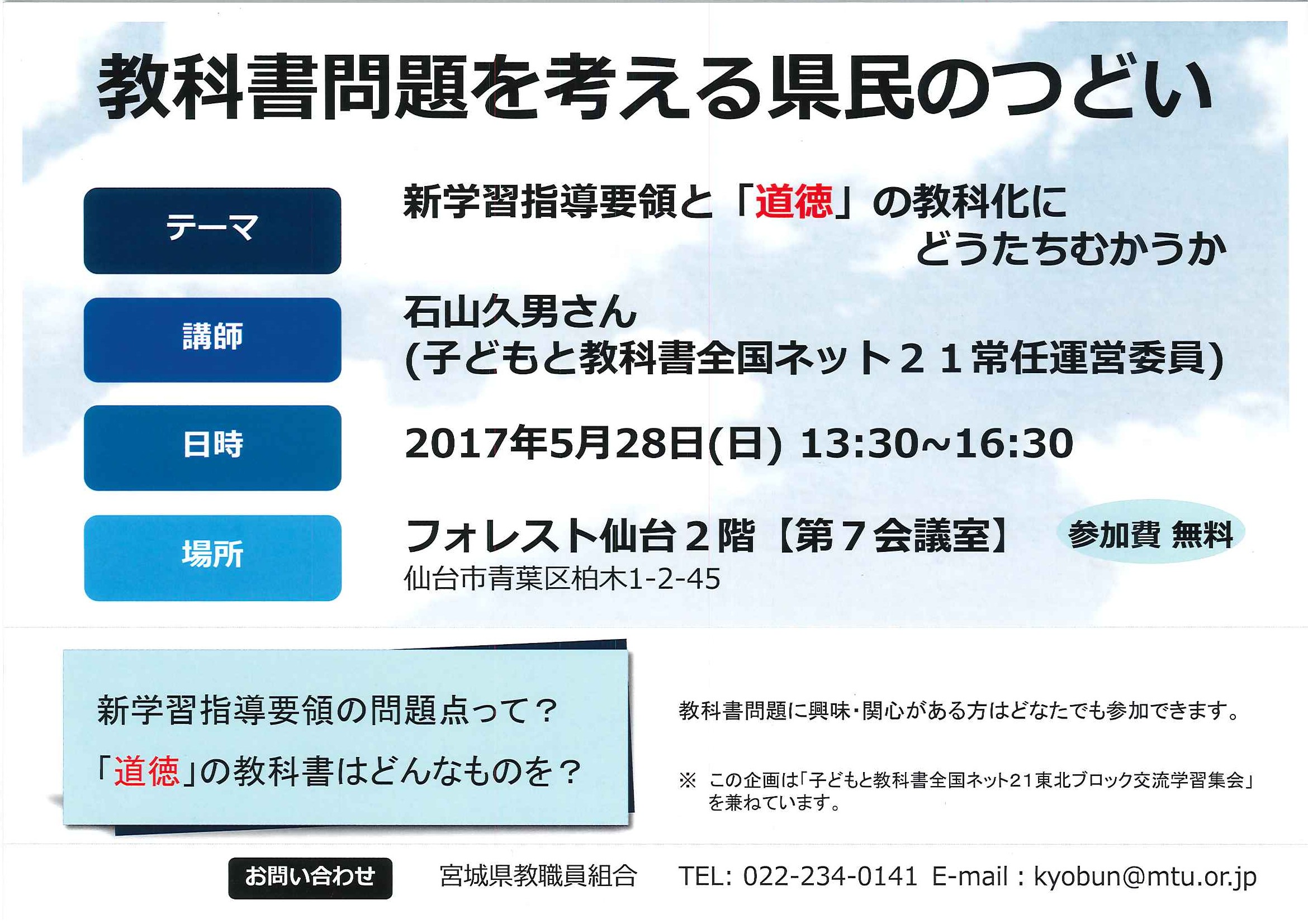 【シンポジウムのお知らせ】教科書問題を考える県民のつどい【日時:2017年5月28日(日)13:30~16:30 場所:フォレスト仙台2階第7会議室】 - 仙台 弁護士 一番町法律事務所
