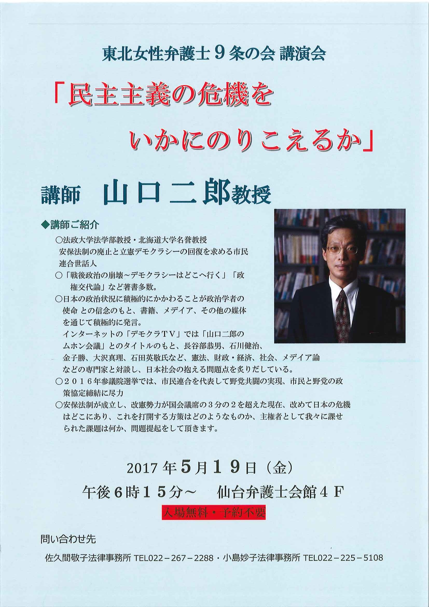 【講演会のお知らせ】民主主義の危機をいかにのりこえるか【日時:2017年5月19日(金)午後6時15分~ 場所:仙台弁護士会館4F】 - 仙台 弁護士 一番町法律事務所