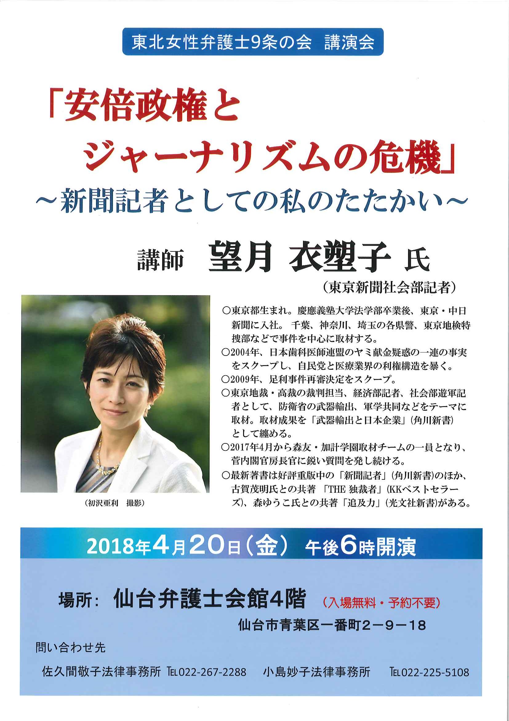 【講演会のお知らせ】安倍政権とジャーナリズムの危機~新聞記者としての私のたたかい~【日時:2018年4月20日(金)午後6時開演 場所:仙台弁護士会館4階】 - 仙台 弁護士 一番町法律事務所