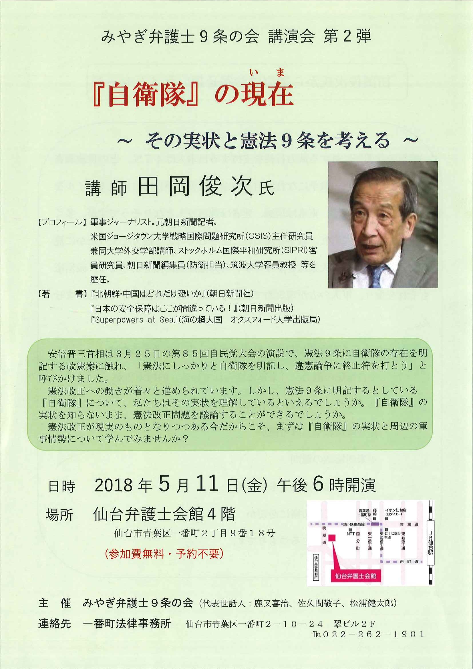 【講演会のお知らせ】「自衛隊」の現在~その実情と憲法9条を考える~【日時:2018年5月11日(金)午後6:00開演 場所:仙台弁護士会館4階】 - 仙台 弁護士 一番町法律事務所