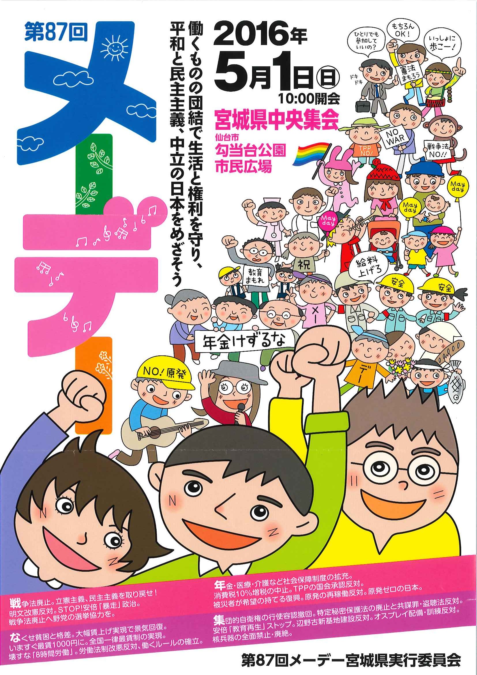 【集会のお知らせ】第87回メーデー【5月1日(日)10:00開会 勾当台公園市民広場】